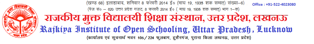 Rajkiya Institute of Open Schooling, Lucknow, Uttar Pardesh was established on 1st December, 1986. Earlier, the Regional Centre, Lucknow was looking after whole of Uttar Pradesh but with the creation of new state of Uttarakhand and expansion and decentralization of various activities, new Regional Centres at Aligarh, Varanasi, Dehradun and Noida were established and districts from the jurisdiction of Regional Centre, Lucknow were transferred to these Regional Centres. Even after such divisions, Regional Centre, Lucknow is still one of the largest Regional Centres in terms of jurisdiction and enrollment of learners.
